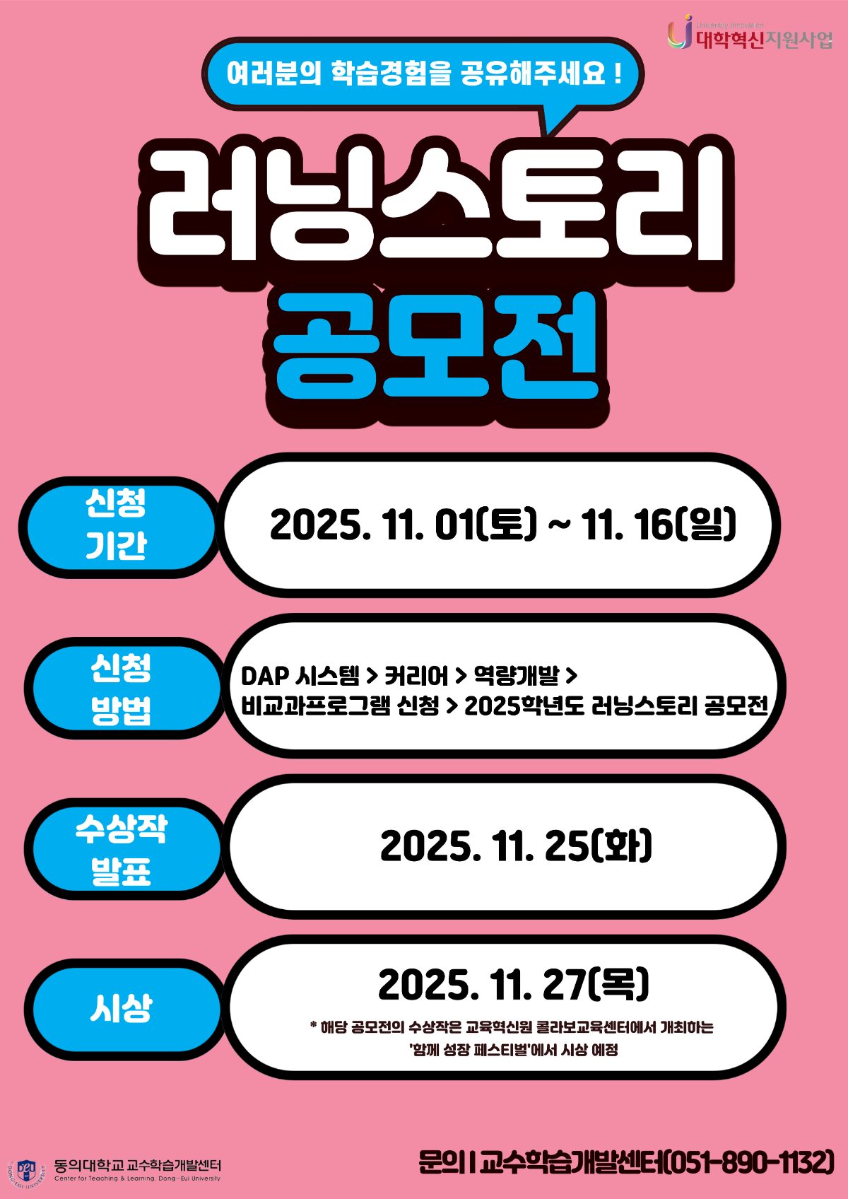 [대학혁신지원사업] 2025학년도 러닝스토리 공모전 신청 안내