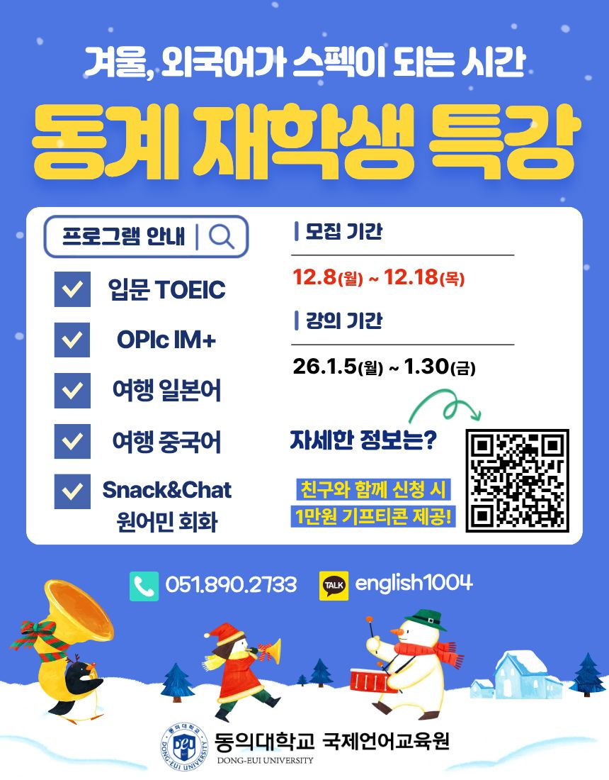 [2025학년도 동계 외국어 특강 프로그램 수강생 모집 안내]